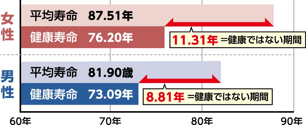 【健康寿命とは?】健康寿命は「健康上の問題で日常生活が制限されることなく生活できる期間」のことを言います。