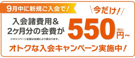 9月中に新規ご入会で、入会諸費用2ヵ月分の会費が 550円(税込)~