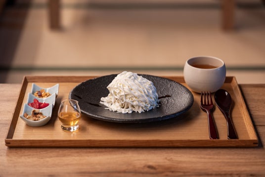 ゆったりとお寛ぎいただける小上がり席では、お客様自身で生絞り体験ができる3種のモンブランをご用意しました。仕上げにトッピングをアレンジしてお愉しみいただける体験型のスイーツです。