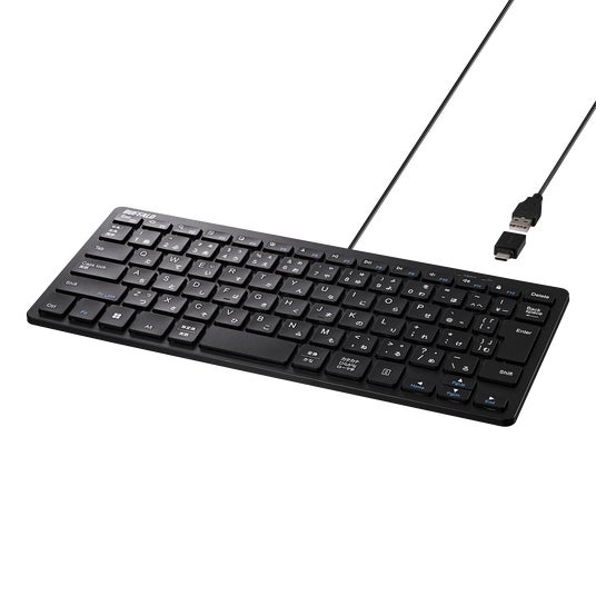 本商品はUSB Type-Aによる有線接続のキーボードです。付属のType-C変換アダプターと組み合わせることでUSB Type-C端子を持つ端末での使用も可能になります。