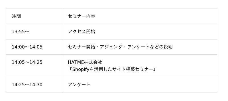 マーケティングアソシエーション株式会社の子会社であるHATME株式会社(本社:東京都台東区 代表取締役:中園広和、以下当社)は2025年9月19日(金)に、ウェブセミナー「【ECサイト立ち上げ予定の方必見】Shopifyを活用したサイト制作~機能紹介から立ち上げ時のポイントまでご紹介~」を、開催いたします。