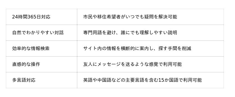中津川市役所に実装された『うちのAI』は、以下のような特徴を持っています。