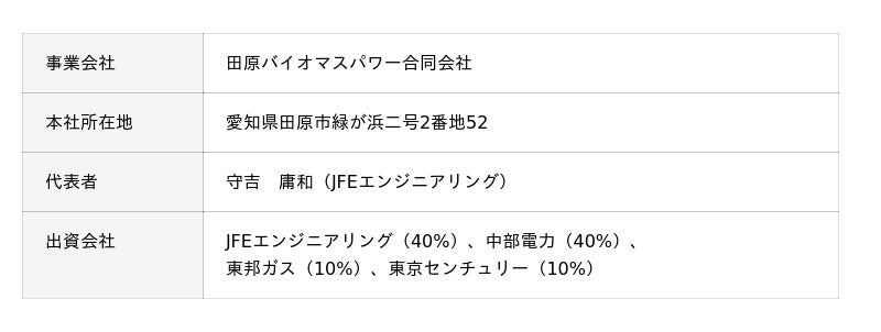 JFEエンジニアリング株式会社(本社:東京都千代田区、代表取締役社長:福田 一美、以下「JFEエンジニアリング」)、中部電力株式会社(本社:名古屋市東区、代表取締役社長:林 欣吾、以下「中部電力」)、東邦ガス株式会社(本社:名古屋市熱田区、代表取締役社長:山碕 聡志、以下「東邦ガス」)および東京センチュリー株式会社(本社:東京都千代田区、代表取締役社長:藤原 弘治、以下「東京センチュリー」)が共同で出資する田原バイオマスパワー合同会社(以下「本事業会社」)は、田原バイオマス発電所(以下「本発電所」)の建設工事を完了し、2025年9月1日に営業運転を開始しました。