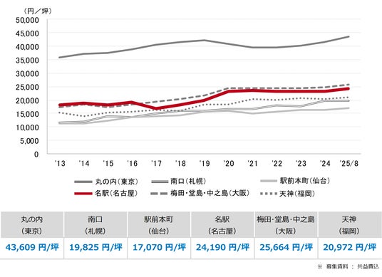 三幸エステート株式会社(本社:東京都中央区、取締役社長:福島正二郎)は、2025年8月度の名古屋市オフィス賃貸状況(空室率&現空面積:全規模、募集賃料&募集面積:全規模、規模別空室率、主要エリア※1空室率:全規模)および全国6大都市(東京・札幌・仙台・名古屋・大阪・福岡)の大規模ビルのマーケットデータをまとめた「オフィスマーケット2025年9月号名古屋」を公表します。
