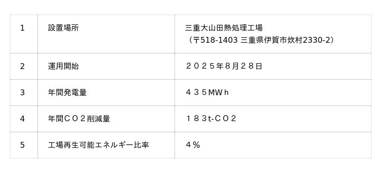 表 三重大山田熱処理工場に設置した太陽光発電設備の概要