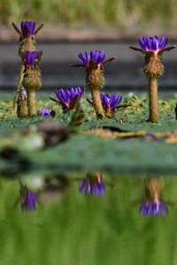 海津市でオニバス開花 保護活動実り水面に18輪咲き誇る
