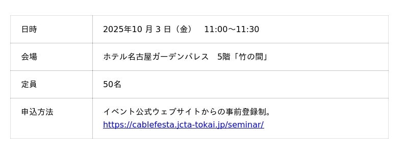 詳しくは、ケーブルフェスタイベント公式サイトをご覧ください。