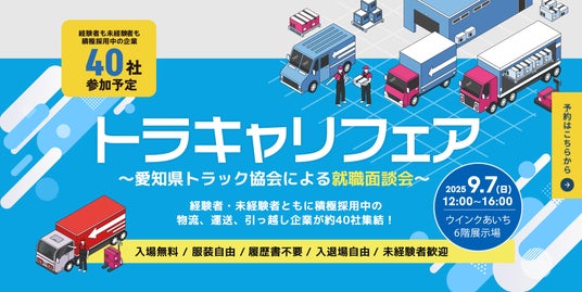 2025年9月7日、「働きやすい職場認証制度」事務局は、愛知県トラック協会が主催した就職面談会「トラキャリフェア」に、中部運輸局との共催組織としてブース出展しました。
