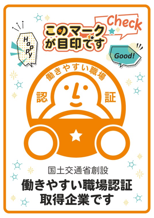 女性ドライバーの積極採用、年間休日の取得数増加、時間外労働の短縮、心と体を守る取り組みなど、働く人ひとりひとりのためにより良い職場環境の実現を目指しており、職場選びの目印となります。