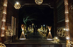 参道を包む温かい光 谷汲山華厳寺で竹あかりイルミ