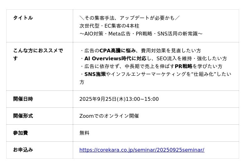 セミナー詳細:https://corekara.co.jp/seminar/20250925seminar/