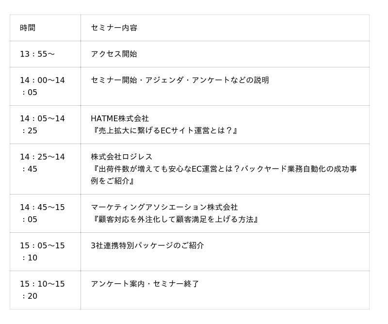 本セミナーでは、HATME株式会社、株式会社ロジレス、マーケティングアソシエーション株式会社の3社で、EC運営の業務効率化を叶えながら売上拡大に繋げる方法を解説します。