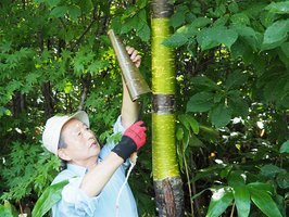 岐阜県では飛騨や東濃などで弁当箱やせいろなどの曲げ物製品が作られていて、綴(と)じる部分に桜の樹皮が使われている。この桜の樹皮を今まで秋田県や奈良県から仕入れてきたが、価格が高くなり供給量も減っているため、今後は県内での調達も検討しなければならないと昨年9月の本連載で伝えた。他県では実際に誰がどのように採取しているのかを知るため、この夏、秋田県の産地を訪ねた。