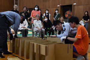 南海トラフ巨大地震の発生を想定した防災訓練が21日、笠松町中川町の笠松刑務所であり、近隣住民が避難所設営や人命救助の方法を学んだ。...