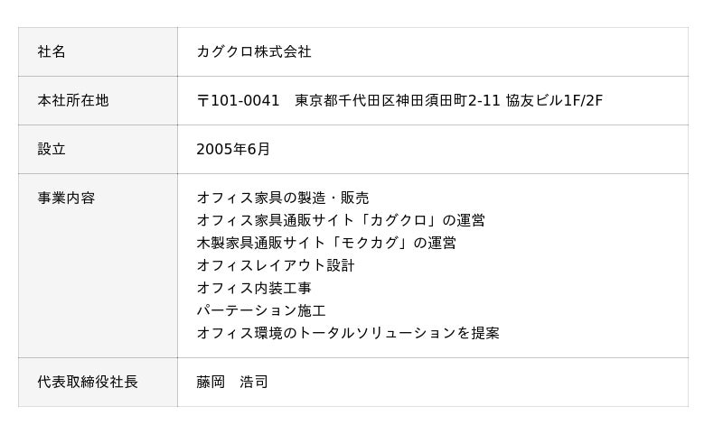 「いいものをいつでも、お値打ち価格で。」をコンセプトに、オフィス家具の製造から販売、内装やレイアウトまで、オフィス環境のトータルソリューションを提供するカグクロ株式会社(本社:東京都千代田区、代表:藤岡浩司)は、このたび2025年8月より1年間、東京メトロ日比谷線(東武スカイツリーライン 日比谷線直通車両)での車内広告の掲示を開始いたしました。銀座や六本木など都心の主要エリアを縦断し、東京メトロ日比谷線に乗車する多様な乗客の皆様に向けて、車内広告を介して当社の魅力やサービスをお伝えいたします。