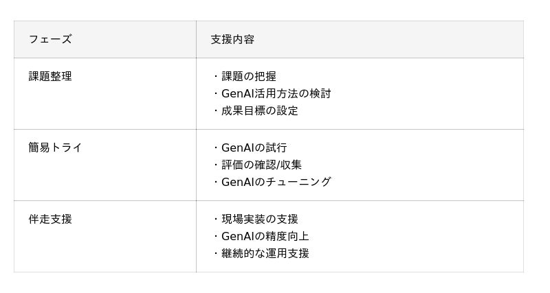 ※LLM活用コンサルティング、システム開発、環境構築など、お客様の要望に合わせた柔軟な支援が