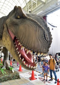 子どもに商店街へ足を運んでもらおうと毎年開催。今年は2年ぶりに全長約13メートルのティラノサウルスが復活し、計9体の恐竜ロボットが商店街に並ぶ。...