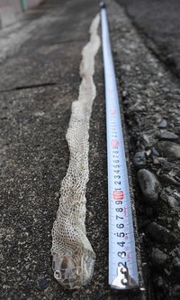 ヘビの巨大抜け殻発見「額縁に入れる」きれいな状態で2メートル 岐阜・揖斐川町