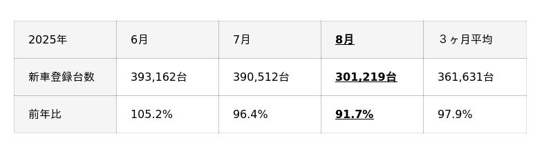 株式会社ファブリカホールディングスの完全子会社、株式会社ファブリカコミュニケーションズ(本社所在地:愛知県名古屋市中区、代表取締役社長CEO:谷口 政人)が運営する中古車情報サイト「車選びドットコム」は、2025年8月の新車・中古車登録台数の推移および当サイトの販売台数推移をもとに中古車市場の動きをまとめた『中古車市場統計レポート』をご案内いたします。