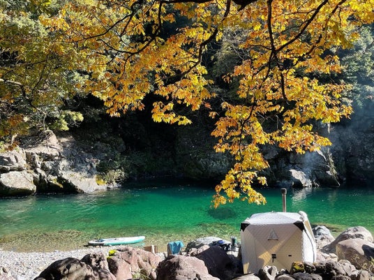 派手な川遊びの季節を越え、自然と一体になる静かな魅力が際立つのが、秋のアウトドアサウナです。