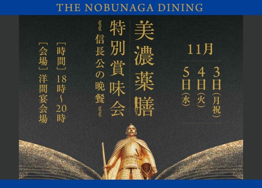 岐阜グランドホテル(岐阜市長良川畔 社長 二神一)では、11月の3日間、「美濃薬膳 特別賞味会 ~信長公の晩餐~」を開催いたします。