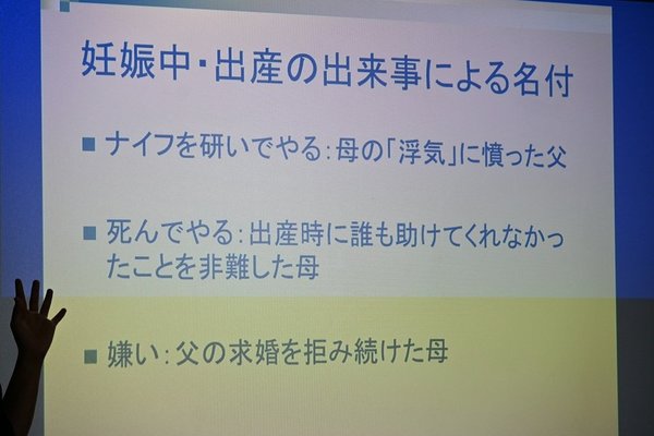 なぜこんな名前なのでしょう。丸山さんによると、彼らは妊娠中や生んだときの出来事にちなんで子どもの名前をつけるそうです。なにがあったかというと…。
