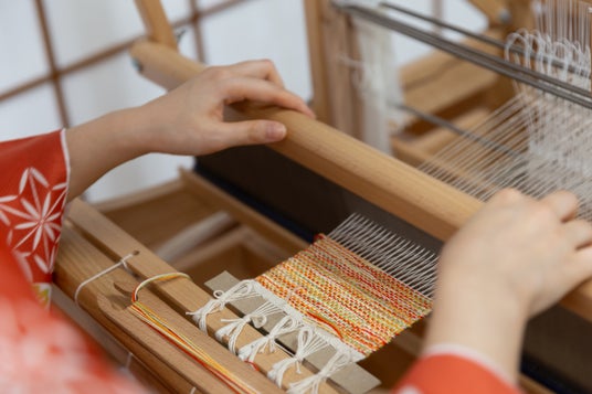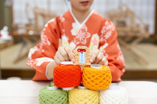日本で唯一、棉の神様をお祭りする愛知県西尾市「天竹神社」にてご祈祷いただいた24色の糸の中から、お好きなカラーを5玉お選びいただきます。その糸を用いて、お客様ご自身の手で「お守り袋」になる布を織り上げる特別な体験です。