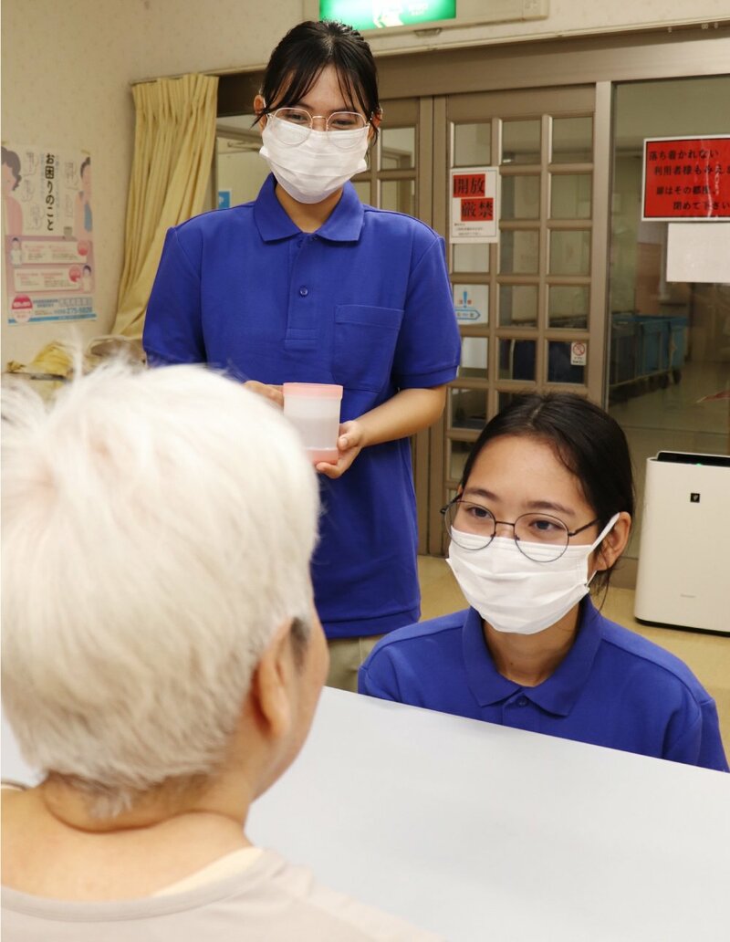 ノーポエエさんは「祖父が看護師からケアを受ける姿を見て、そういった仕事に憧れました。日本ではそういった業務を介護職員がやると知り、介護を学ぶことにしました」と来日のきっかけを話します。フーフーチョウさんは「学校では先生が、施設では先輩職員が親切に教えてくれます。介護の言葉は難しいけれど慣れてきて面白くなってきました」と話します。