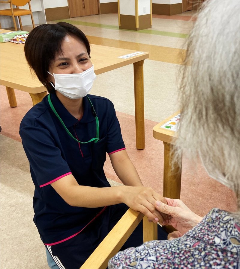 そのうち4人はすでに介護福祉士資格を持っています。ライフ・ネット忠節で働くミャンマー出身のミコウーさんもその一人。21年に技能実習生として来日し、ライフ・ネット長良で働きながら、ミャンマー出身者が講師を務めるオンライン講座を週3回受講して対策し、昨年の試験で一発合格しました。働きながら目指す場合は3年以上の実務経験が必要で、ミコウーさんは最短合格を果たしました。「しっかりと勉強したことで、認知症の人の気持ちを考えやすくなるなど、仕事にも役立っています」と成果を話します。