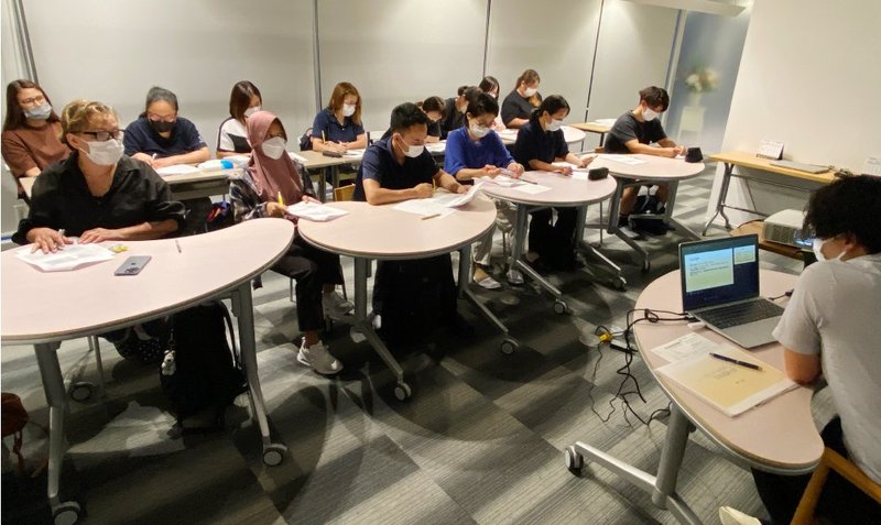 支援講座は日本人も含め計17人が受講。講師に、愛知県一宮市の特別養護老人ホームで働きながら中部学院大学の非常勤講師を務める福島知諒さんを迎え、7月から1月まで月2、3回、平日の夜に開講しています。