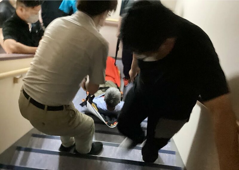 緊急用担架で利用者を迅速に2階へ 神戸町・ラック