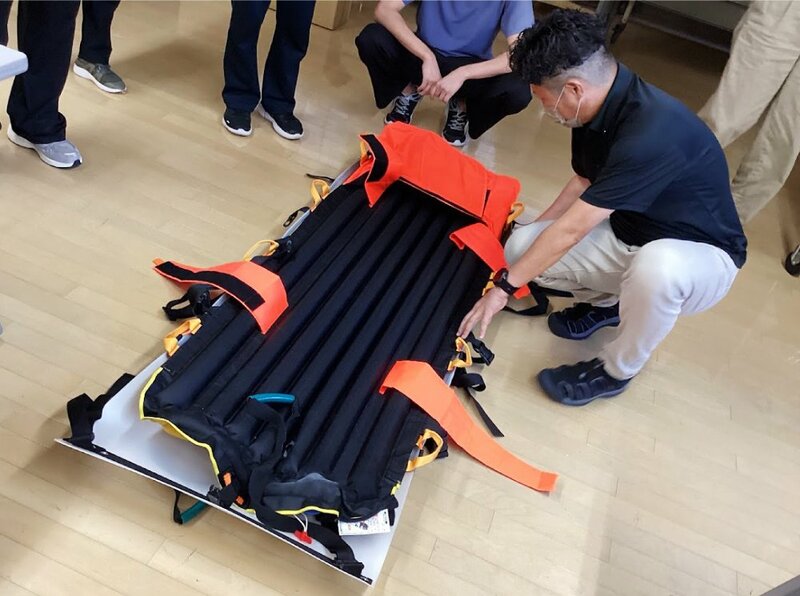 利用者役をした江崎さんは「担架で移動することで、腰などが痛くならないか、固定されて苦しくないか、怖くないかなどの心配がありましたが、エアベッドのような部分に守られ、おんぶよりもよっぽど安心感がありました」と話します。