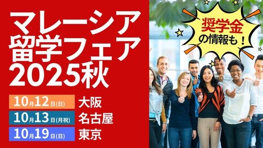 マレーシアの大学や語学学校への進学をサポートする「マレーシア留学サポートセンター」を運営するグローバルハブジャパン株式会社(本社:東京都渋谷区、代表取締役:斉藤 高志)は、2025年10月12日(日)大阪、10月13日(月・祝)名古屋、10月19日(日)東京の3都市にて、「マレーシア留学フェア2025秋」を開催します。本フェアでは、マレーシアの主要大学や教育機関の担当者が来日し、最新の入学情報や奨学金制度、マレーシアにおける生活環境などについて直接担当者と相談ができます。さらに、マレーシアの大学卒業生による留学体験談やIELTS対策セミナーなども実施し、学生や保護者が安心して留学準備を進められる機会を提供します。