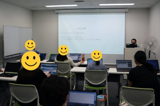 約3か月におよぶ準備期間を経て、いよいよ研修当日。印刷チームの全メンバーが参加し、「Power Automateを知り、体験すること」を目的に、実際に操作しながら学べる構成としました。講師はHさん、操作サポートはNさんが担当し、参加者の理解を深めながら研修を進行しました。