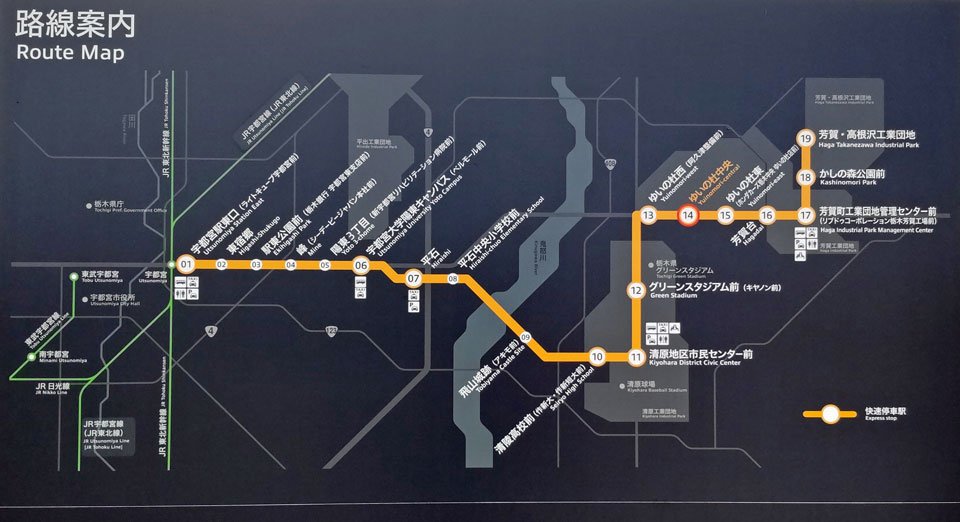宇都宮ライトレールは、2年前の2023年8月26日に開業。東北新幹線や東北線が発着するJR宇都宮駅近く宇都宮駅東口停留場から、宇都宮市に隣接する芳賀町の芳賀・高根沢工業団地停留場までの14.6キロの路線です。黒色と黄色の3連接車体の低床式電車が、19の停留場を結びます。