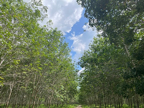 天然ゴムの樹液採取後の木をリサイクル使用。