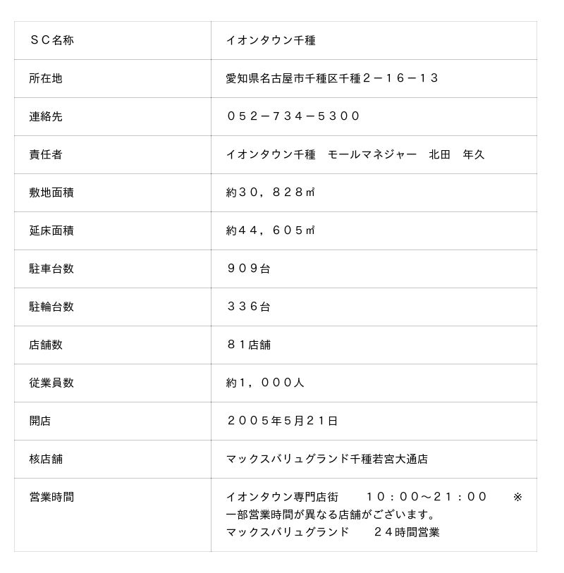<イオンタウン千種 基本情報> ※10月17日時点