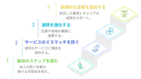 就労支援を中心に、一人ひとりの「自分らしさ」に寄り添い、「働く」を通じて自己理解や可能性を広げ、未来への一歩を踏み出すためのサポートを行っています。