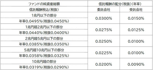※信託報酬の配分は、ファンドの純資産総額に応じて、以下の通りとします。