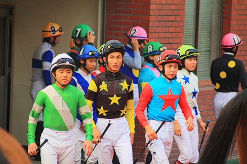 第2戦、パドックで騎乗に向かうヤングジョッキーたち