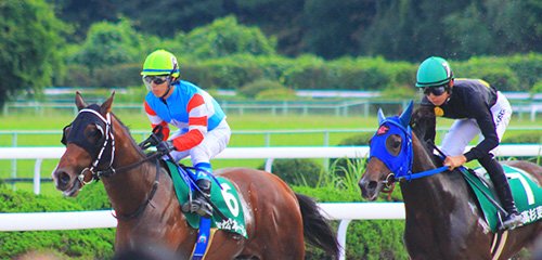 3R、イエヤスに騎乗しゴールを目指す松本騎手と2番手で追う高杉吏麒騎手