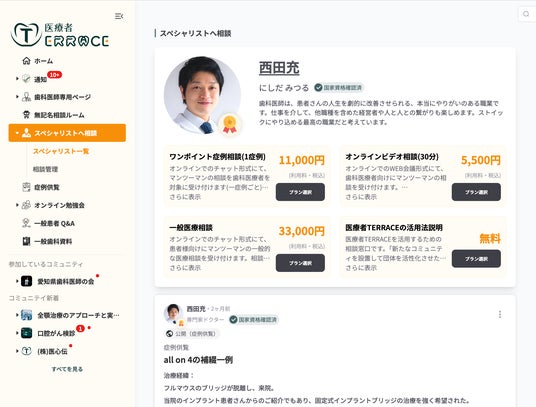 株式会社医心伝(本社:名古屋市中区、代表:西田 充)は、このたび歯科医療関係者を対象とした歯科特化型デジタルプラットフォーム「医療者TERRACE」を10月10日にプレリリースいたします。