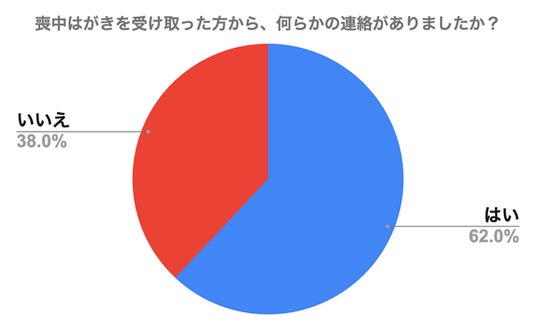 喪中はがきに対する反応、6割以上が「連絡あり」と回答