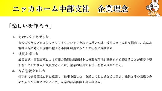 ニッカホーム中部支社 企業理念「楽しいをつくろう」