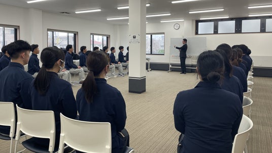 毎年4月になると新卒入社の社員を対象に一斉に研修を行います。ビジネスマナーについて外部講師を招いて学生と社会人の違いを学びます。