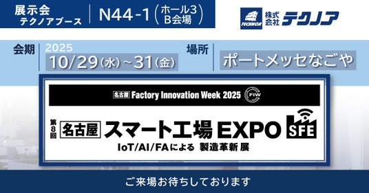 株式会社テクノア(本社:岐阜県岐阜市、代表取締役:山崎 耕治)は、10月29日~31日に ポートメッセなごや で開催される「[名古屋] ファクトリーイノベーション Week 2025」に出展いたします。
