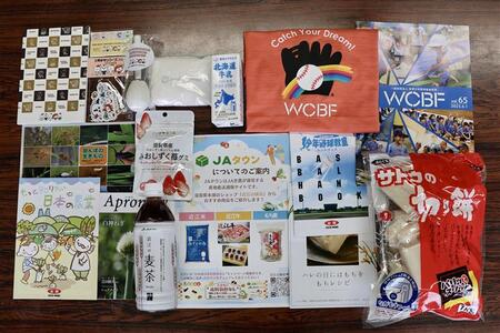 おもち、チラシ、クリアファイル、Apron10月号、 冊子「ベースボールハンドブック」、 冊子「もっと知りたい日本の農業」、 冊子「栄養ハンドブック」 |