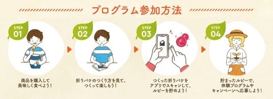 カルビーのスマートフォンアプリ「カルビー ルビープログラム」内で募集しています。折りパケの対象となるカルビー商品の空き袋を指定の形に折りたたんで「ルビープログラム」上で撮影すると、ルビー(ポイント)を獲得できます。500ルビー貯まるごとに1回応募ができます。キャンペーン期間中、お一人さま何度でも応募いただけます。