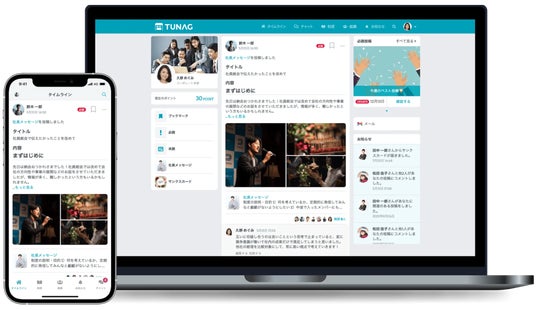 TUNAG(ツナグ)は、組織の生産性向上や離職率の低下を目的とし、社内コミュニケーションと情報共有を促進する統合型プラットフォームです。2025年8月時点で、導入企業数は1,200社、利用ユーザー数は140万人を突破しています。