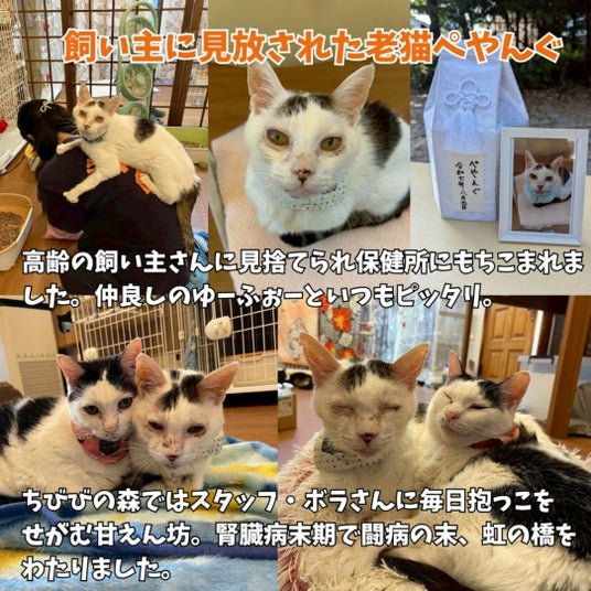 私たちは、「ちびびの森」の取り組みを通じて、社会を次のように変えていきたいと考えています。・病気や老いによって行き場を失う猫を減らす